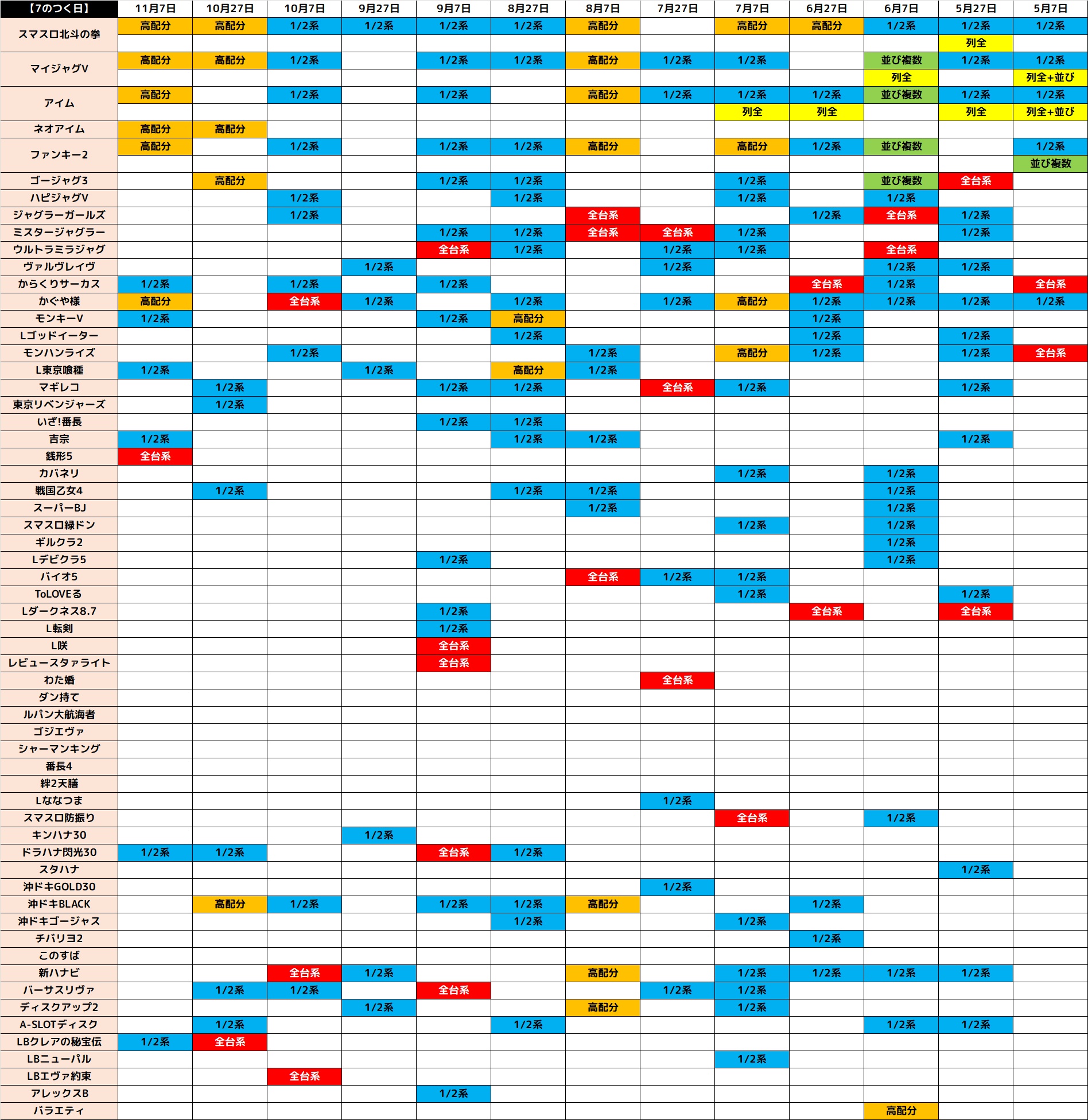 11月7日(金)│エスパス新小岩│定番のジャグ&北斗を筆頭に様々なエリアから好調機種が出現!新しめの機種も抜かりない仕掛けで銭形5が全台系濃厚に!ほかにもヴヴヴ2・新鬼武者3・東リベに万枚突破台があったりと見ドコロ満載!