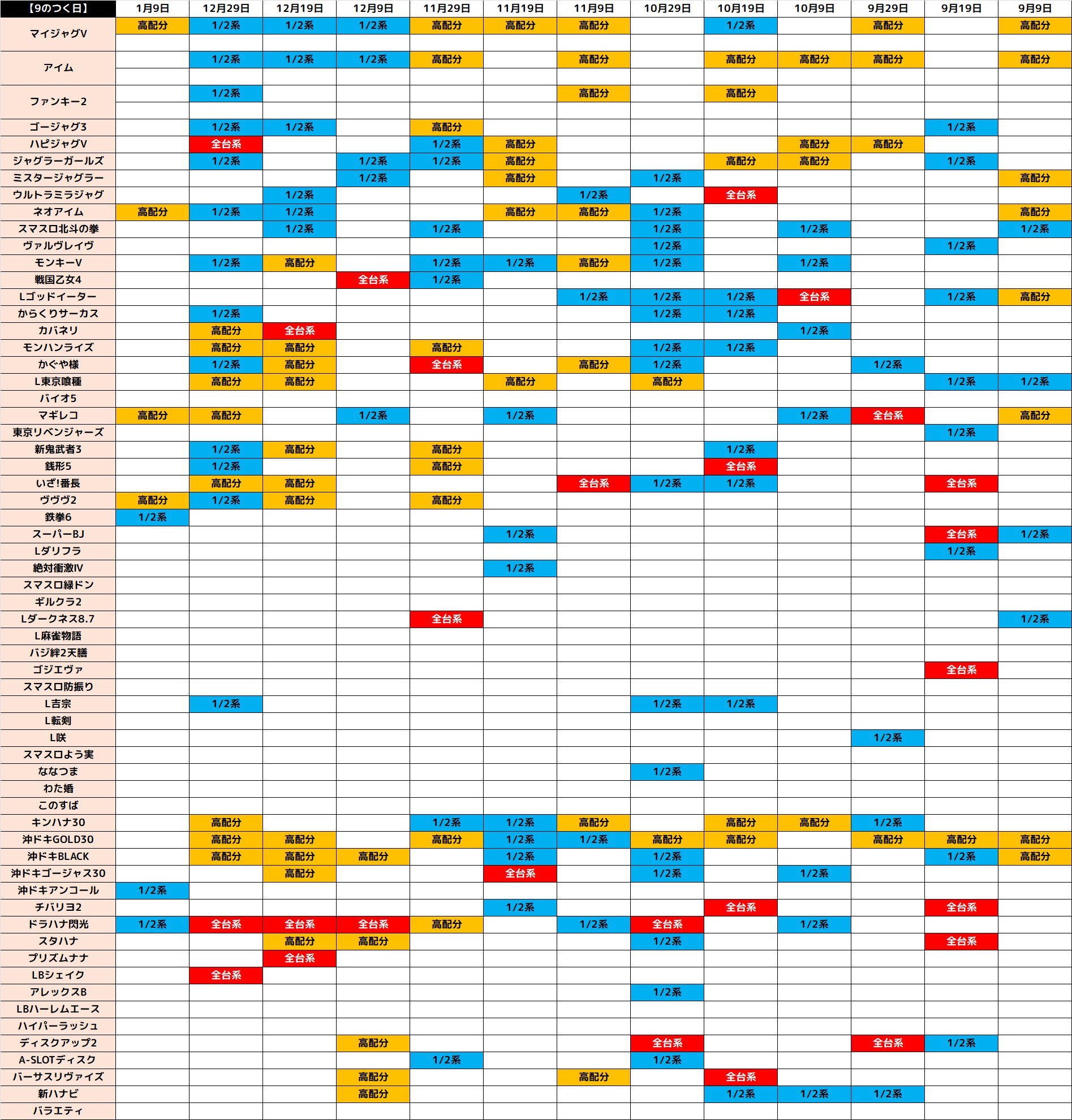 12月9日(火)│エスパス新小岩│9の日に強い沖スロは全台系&1/2系濃厚の優秀機種が複数登場!メインの主力機・毎日オススメ機種・ジャグからもお宝台が続出したほか、ノーマルや少台数機種にも好調機種を確認!