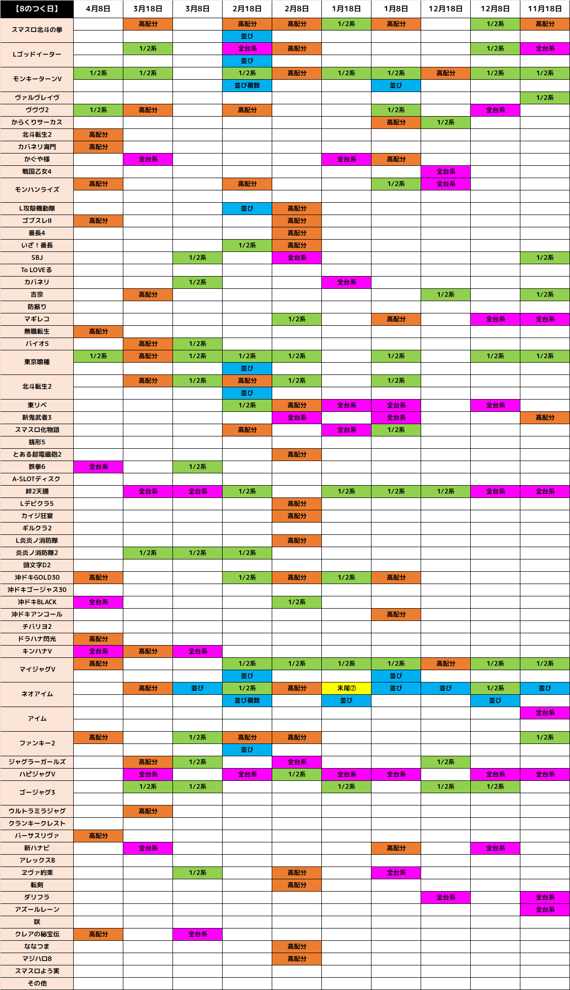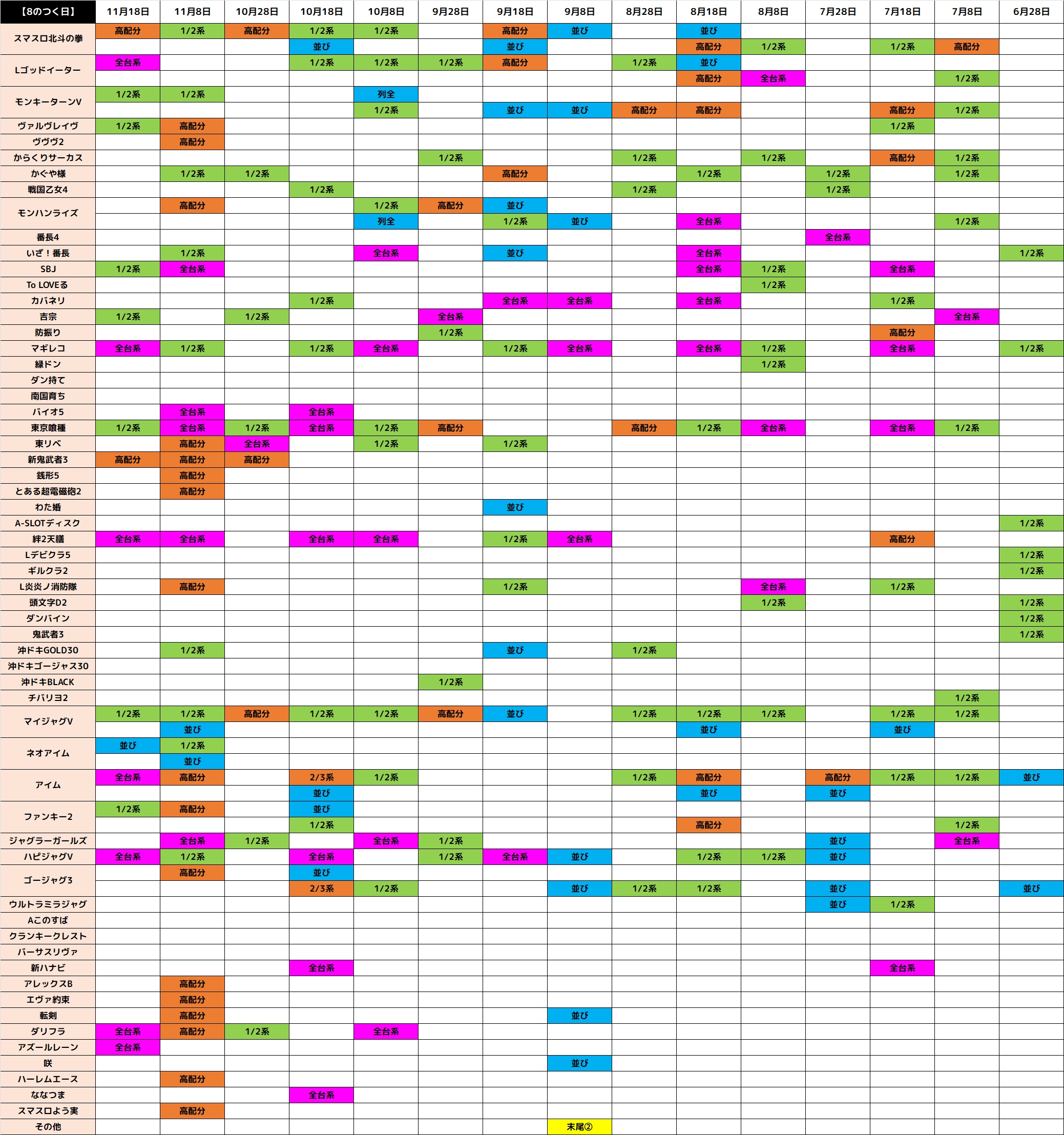 9月8日(月)│エスパス新大久保│8のつく日に仕掛け多数!全台系濃厚機種はもちろん優秀並びが大量に出現!今回は末尾や列仕掛けも躍動する!