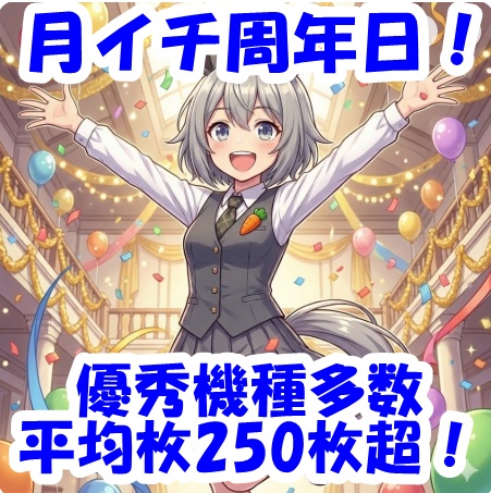 1月21日(水)│エスパス高田馬場│月イチ周年日に平均+250枚超のプラス!高配分機種が大量にアリ!並び仕掛けも大量!今年初の周年日に花を飾る結果に!