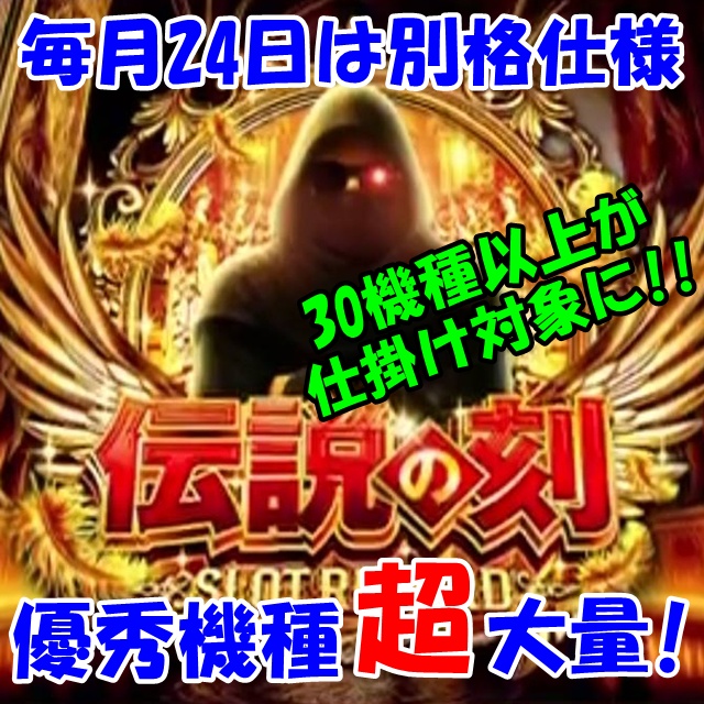 1月24日(土)│エスパス新大久保│毎月24日は仕掛け満載の月イチ周年日!今回は初開催となった伝説の刻取材に加え、エスパス高田馬場共闘でハンパない仕掛け量に!2Fはもちろん3Fからも高配分以上の好調機種が続出!